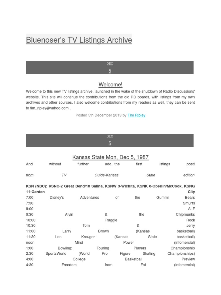 Bluenoser S Tv Listings Archive 1 News Broadcasting Cbs