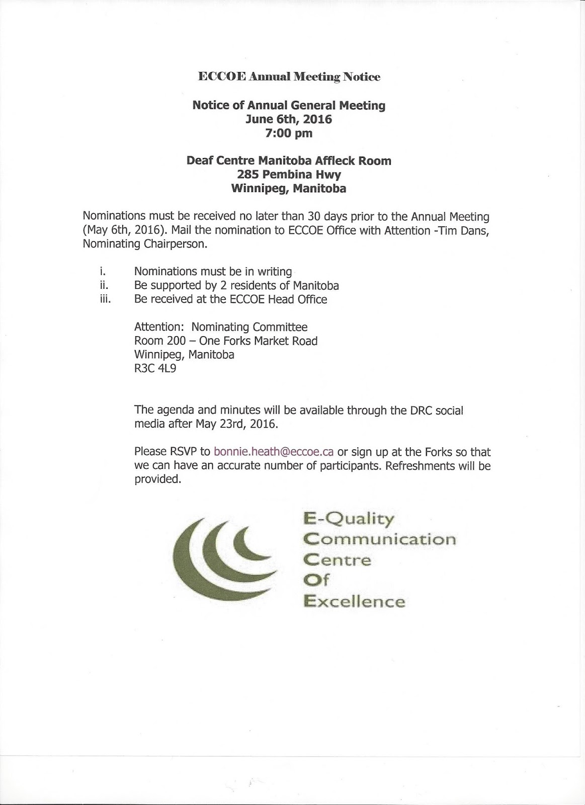 Deaf Centre Manitoba Inc April 2016